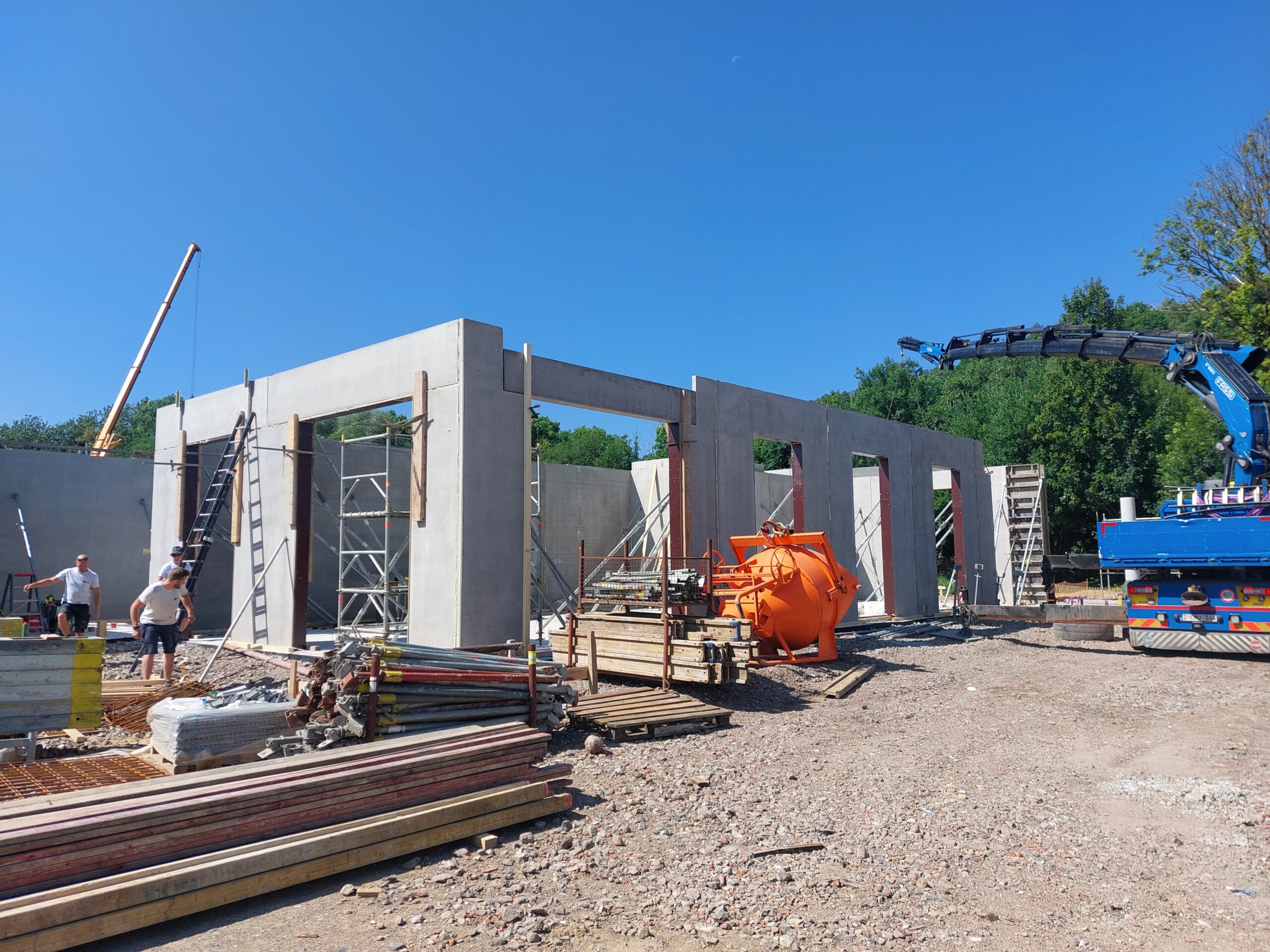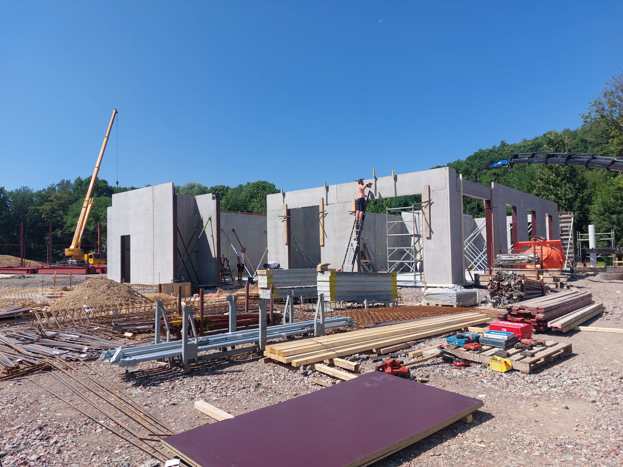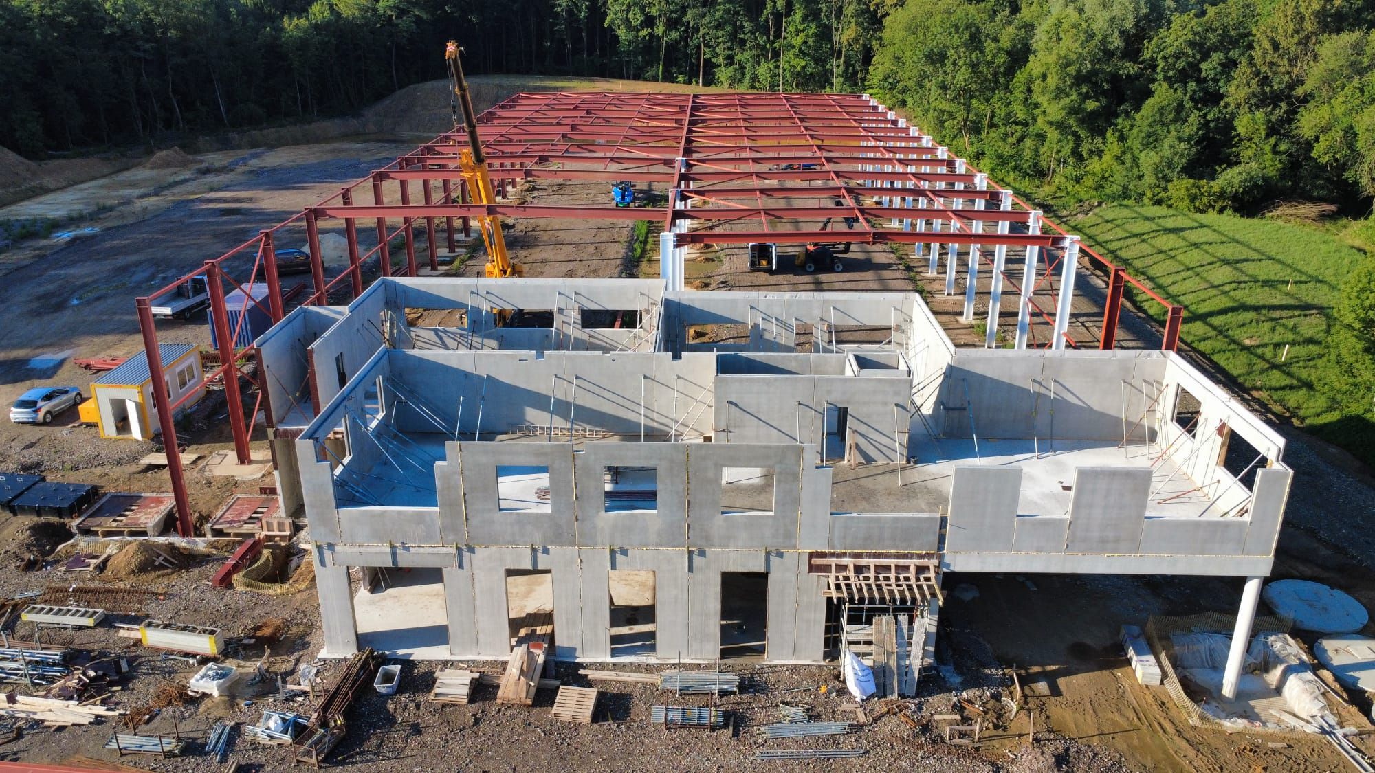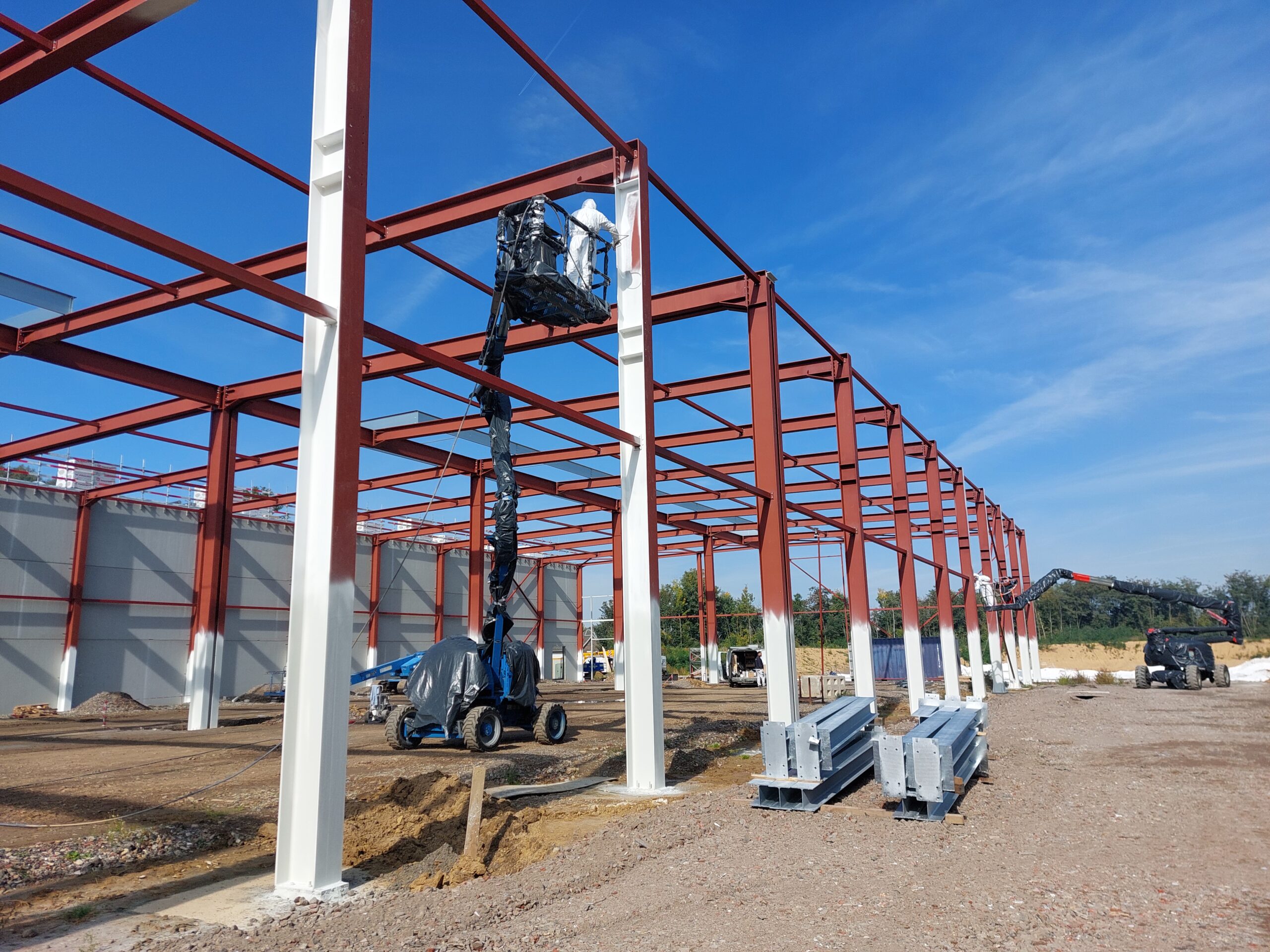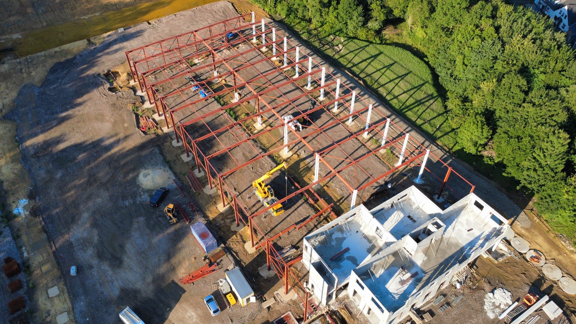 - Juillet 2025 : Montage de l’ossature métallique des halls